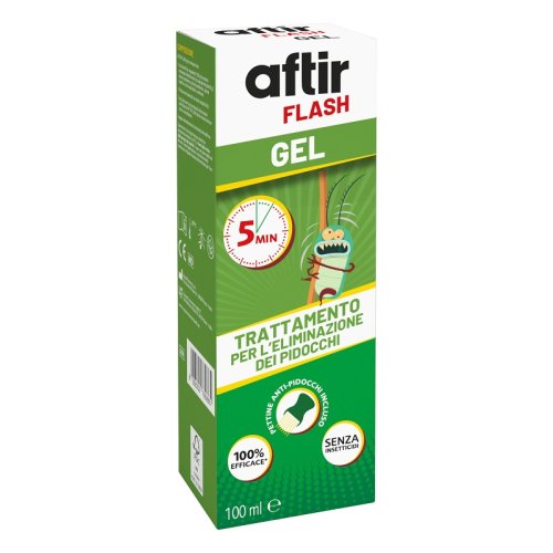 Trattamento per l'eliminazione di pidocchi del capo e lendini. AFTIR FLASH gel uccide i pidocchi mediante un meccanismo d'azione fisico (soffocamento) e impedisce lo sviluppo delle lendini (uova di pidocchio).