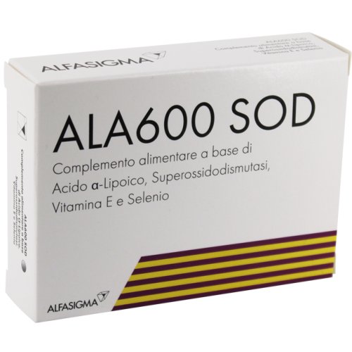 Complemento alimentare a base di acido alfa-lipoico, superossidodismutasi (SOD), vitamina E e selenio. La composizione di ALA600-SOD è una combinazione di acido alfa-lipoico (ALA), estratto di melone titolato in superossidodismutasi (SOD), vitamina E e selenio. Per la presenza di vitamina E e selenio, ALA600-SOD contribuisce alla protezione delle cellule dallo stress ossidativo.