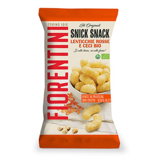 Bio cornetti di riso con lenticchie rosse e ceci. Prodotto estruso.Soffici snackini che si sciolgono in bocca, arricchiti con stuzzicanti lenticchie rosse e ceci. Non fritti, grazie ai legumi apportano una buona fonte di fibre, proteine e minerali.