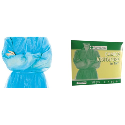 Dotato di cinture cucite al camice stesso per la chiusura in vita e attorno al collo. Maniche dotate di elastico al polso.