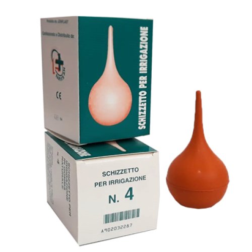 Schizzetto per irrigazione in gomma naturale. Per mantenere inalterata nel tempo l'efficienza di questo schizzetto, si consiglia di lavarlo dopo ogni uso con acqua e sapone nel caso di impiego di sostanze grasse. Sterilizzabile a 120°C.
