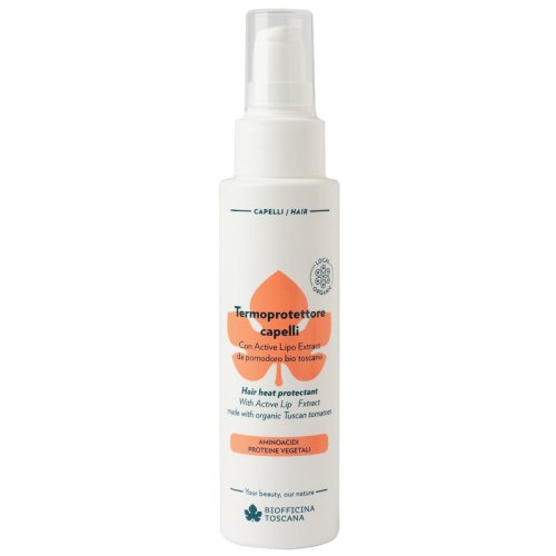 Termoprotettore ricco di attivi con molteplici benefici. L’Active Lipo Extract da pomodoro bio toscano ricco di licopene agisce in sinergia con un complesso di aminoacidi, proteine idrolizzate vegetali e un polimero biodegradabile che protegge i capelli dal calore fino a 230°C e ne riduce fino al 26% la rottura. Questi attivi rendono i capelli più lucenti, riducono il crespo, migliorano la pettinabilità, proteggendoli dai danni esterni e del calore.