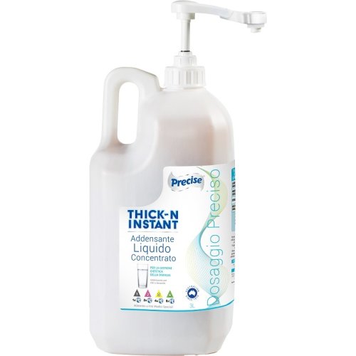 Alimento a fini medici speciali. Innovativo addensante liquido a base di gomme, di colore chiaro e dal sapore neutro, utilizzato per essere aggiunto a cibi e bevande con lo scopo di addensarli fino a raggiungere una viscosità precisa e predeterminata, per la gestione della disfagia in conformità con il framework dell'International Dysphagia Diet Standardization Initiative (IDDSI).
